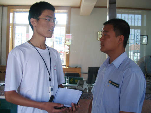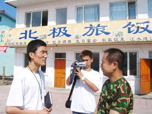 经过周密的准备,实践团于7月18日踏上了北去的列车,19日到达了漠河县车站。和尹静联系好时间以后,实践团成员开始了最后的采访准备。20上午,实践团成员乘班车从漠河县前往北极村,经过一个半小时的行程,到达北极村。稍做休整后,按照预先计划便开始了工作。