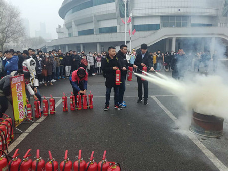 为了让师生掌握灭火器的使用方法,了解初期火灾的扑救常识,在校园A、C区保卫处还组织轻工、金融等学院近 400名师生,进行了灭火演练。