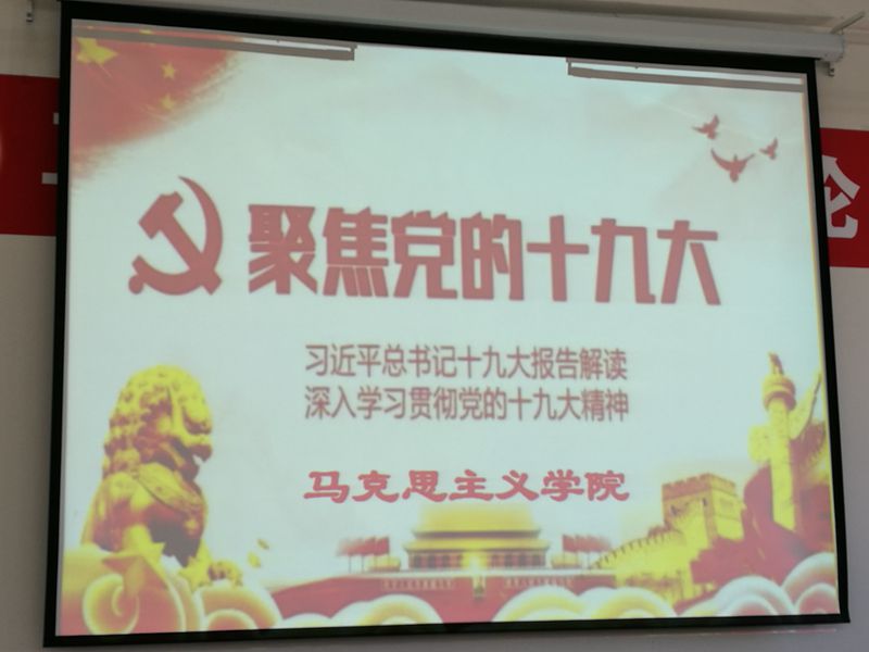 学院党总支书记宋真从十九大报告的主要内容、重大意义、如何学习贯彻宣传十九大精神等方面详细解读了十九大报告精神。宋真表示,作为思想政治教育理论课的教师要先学一步,及时根据十九大报告逐条更新教学内容,科学设计教学方案,加快推动十九大精神进讲义、进课堂、进头脑的“三进”工作。