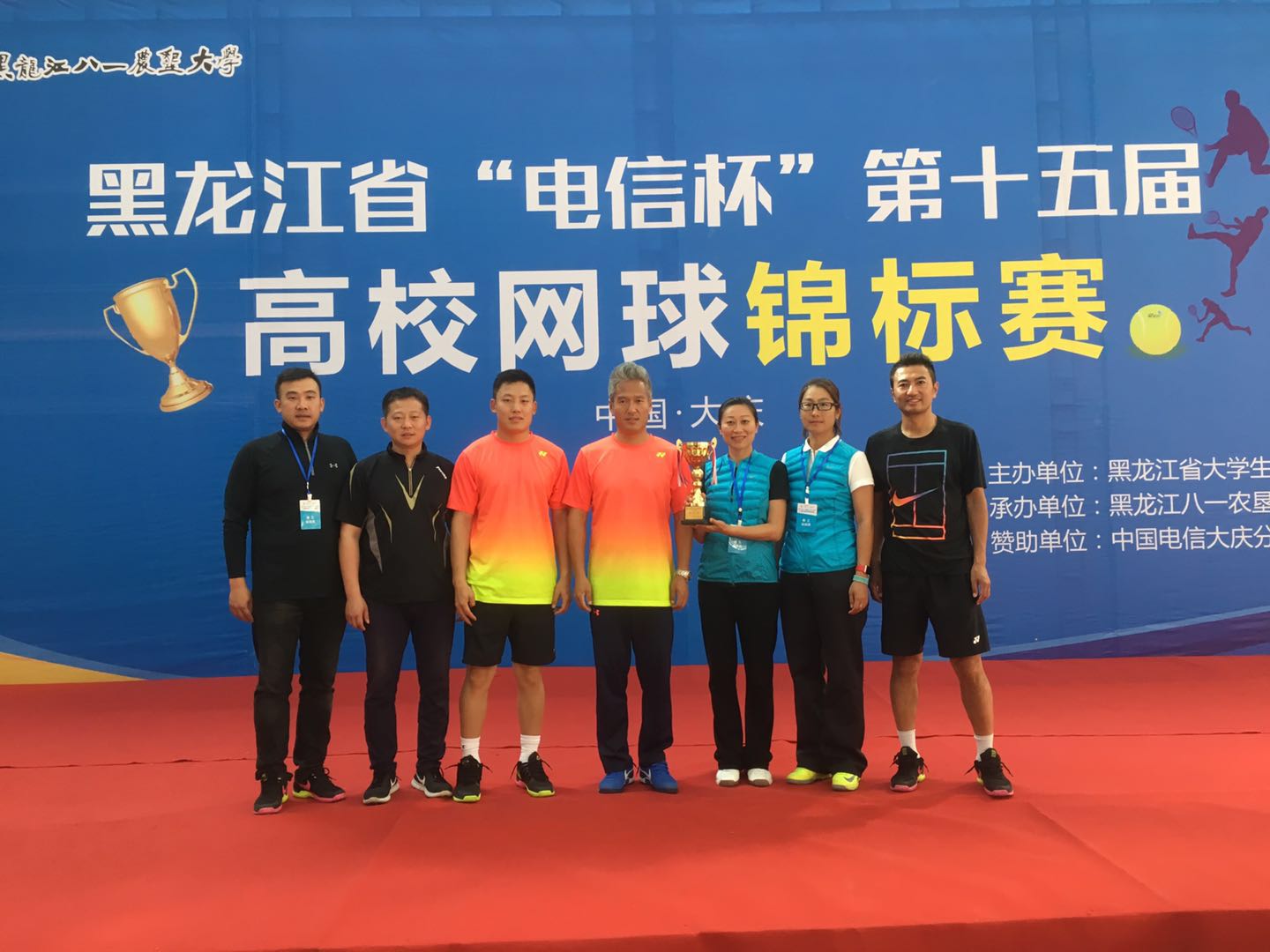 9月21日至24日,2017年黑龙江省“电信杯”第十五届高校网球锦标赛在黑龙江八一农垦大学举行。本次大赛由省大学生体育协会主办,黑龙江八一农垦大学承办,共有来自全省15所高校的200余名运动员参加比赛。赛事分为领导组单打及双打比赛,教工混合团体比赛,学生甲、乙组男、女团体赛及学生甲、乙组男、女单打、双打比赛(甲组为阳光组,乙组为高水平组)。我校派出7名教师和22名学生参加了教工组和学生组的全部比赛。
