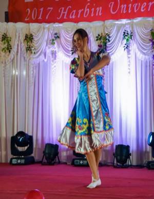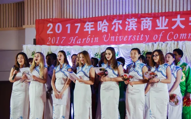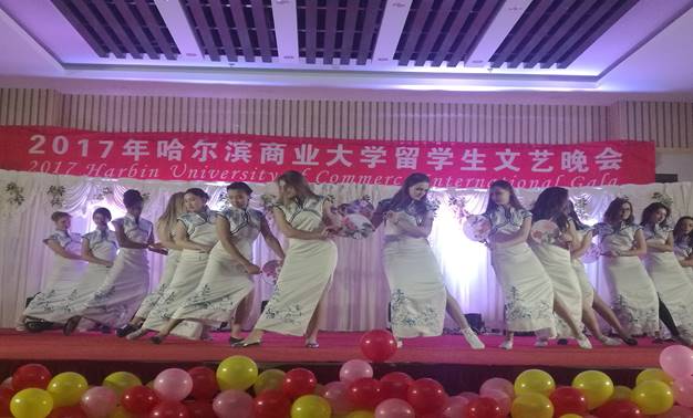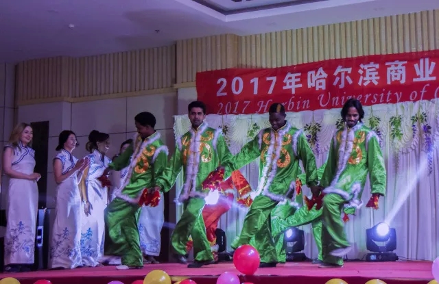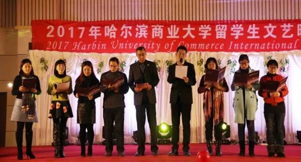 12月1日,隆冬时节,室外已是冰天雪地,哈尔滨商业大学A区教学综合楼一楼大厅却热情如潮,灯火通明,座无虚席。哈尔滨商业大学2017年留学生文艺晚会正在举行。副校长程伟、宣传部常务副部长贾妮燕、团委书记王鹤腾观看了演出,出席晚会的还有国际教育学院院长曾涛、党总支书记武广斌、副院长徐晓菲以及国际教育学院的全体教师。