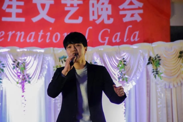 2016级经济学院国际经济贸易一班的韩国小伙儿金熙泰曾在校园十佳歌手大赛中取得第四名,他的一首中国歌曲《改变自己》高亢嘹亮,点燃了学生们的热情。