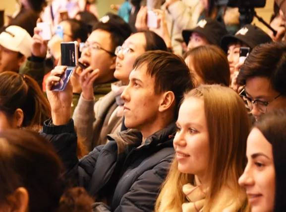 身穿充满民族风情的服装的哈萨克斯坦硕士留学生萨马尔和俄罗斯硕士留学生奥利亚的《哈萨克民族舞蹈》热情而柔美;俄罗斯学生玛蒂娜(17级经济学院,国际经济与贸易专业本科生)演绎的《月亮代表我的心》深情悠扬,字正腔圆。