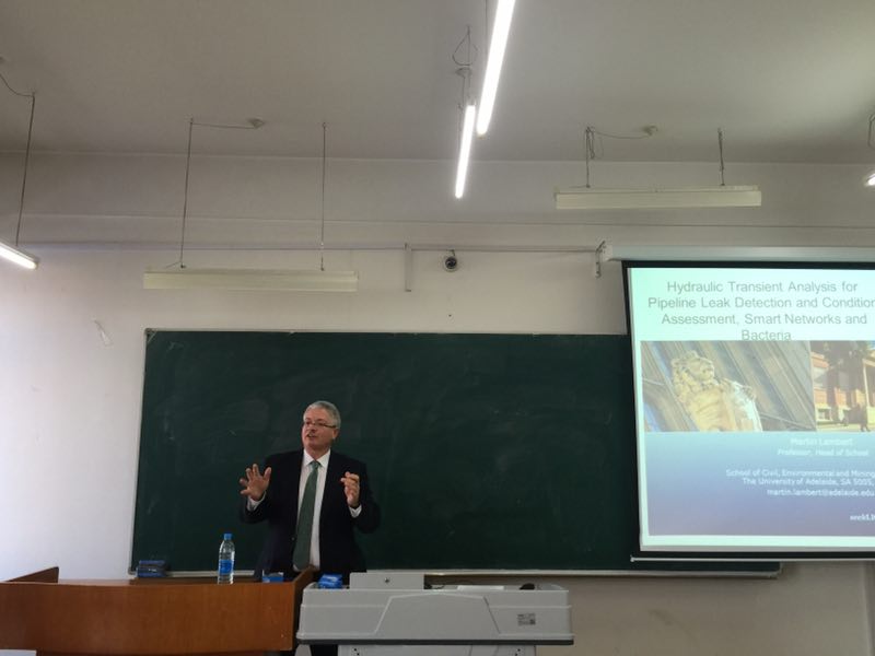 讲座由能源与建筑工程学院院长李晓燕教授主持,能源与建筑工程学院的老师、研究生和本科生参加了本次报告会。马丁.兰伯特教授围绕“Hydraulic Transient Analysis for Pipeline Condition Assessment and Smart Water Networks”,就瞬变流动分析在管道状态检测中的应用、智能管网技术、海绵城市技术等问题等方面进行了深入探讨,与同学们分享了澳大利亚实施智能管网检测技术的经验和方法。最后还介绍了澳大利亚阿德莱德大学的情况,表示欢迎老师和同学们去阿德莱德大学交流和学习。