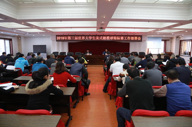 12月13日下午,我校于行政楼六楼会议室召开2018年第三届世界大学生美式橄榄球锦标赛筹备工作部署会。筹备委员会全体成员参加了会议。赛事筹委会主席、校党委书记孙先民主持会议。
