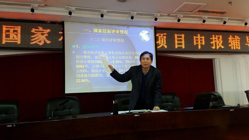 为了进一步提升我校教师申报国家社科基金项目的积极性和申报质量,12月21日下午,科研处在行政楼会议室召开2018年度国家社科基金项目申报辅导报告会。赵德海教授做了关于“2018年国家社科基金项目申报—贯彻落实十九大精神做好选题”的主题辅导,科研处副处长邱泽国主持辅导会,200多人的会场座无虚席,热情高涨。