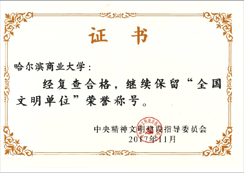 这是我校继2015年荣获第四届“全国文明单位”称号后,在文明创建工作中取得的又一个标志性重大成果。学校党委号召,全校师生员工要珍惜荣誉,发扬成绩,再接再厉,深入学习贯彻习近平新时代中国特色社会主义思想和党的十九大关于精神文明建设的重要精神,改革创新,锐意进取,唱响主旋律,传播正能量,争创全国文明校园,力争使得我校思想政治工作评估和本科教学审核评工作取得优异成绩,为建设高水平教学研究型商业大学提供思想保证、精神力量和道德滋养,让商大进一步成为师生员工发展进步的广阔舞台和精神家园!