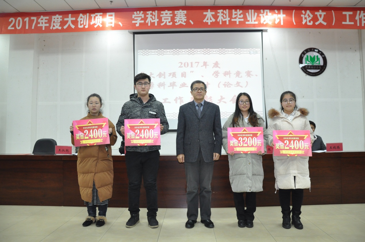 12月29日下午,学校组织召开了2017年度“大创项目”、学科竞赛、本科毕业设计(论文)表彰大会,副校长程伟出席会议。教务处处长孙智慧、教学实验设备管理中心主任张莉、校团委书记王鹤腾、学工处副处长王淑艳等为获奖代表颁奖。各学院院长、教学院长、指导教师共计160多人参加会议。教学实验设备管理中心副主任章刘成主持会议。