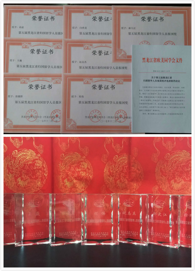 新年联欢会在“第五届黑龙江省归国留学人员报国奖”的获奖代表颁奖仪式中拉开序幕。理学院党总支书记徐耀群代表我校获奖者参加了颁奖仪式。“第五届黑龙江省归国留学人员报国奖”是省欧美同学会为激励全省归国留学人员发扬留学报国精神,于2017年上半年开展的申报评选工作,以表彰近五年来符合“作为主要完成者在自然科学、社会科学等领域获得省部级以上奖励,获得国家级、省级劳动模范(先进工作者)称号,或荣获相应国家级、省级荣誉称号”等条件的全省优秀归国留学人员。我校经过相关职能部门的认定,共有12人符合推荐申报条件。经过省内专家评审,全省共有138人获得“第五届黑龙江省归国留学人员报国奖”,我校程伟、孙波、郝大江、赵志杰、白士贞、徐耀群、王巍等7人获此殊荣。