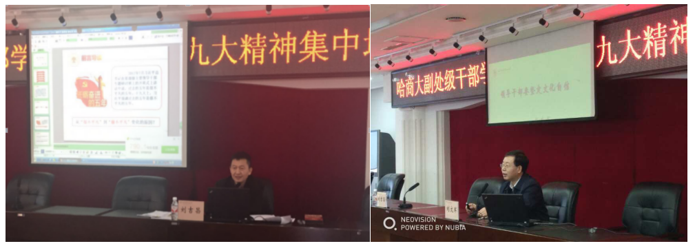 作为培训班的第一课,校党委书记孙先民作了题《学习贯彻十九大精神,深刻理解习近平新时代中国特色社会主义思想的丰富内涵》的专题报告。孙书记的报告在系统阐述和深刻解读习近平新时代中国特色社会主义思想和党的十九大提出的新思想、新矛盾、新方略、新使命、新征程、新部署、新任务的基础上,与龙江高等教育发展紧密联系,与我校整体工作和党员干部的思想实际紧密结合,既有理论意义,又有实践指导意义,为培训班上了精彩的一课。校纪委书记姜国峰主持开班式、结业式并作专题报告。