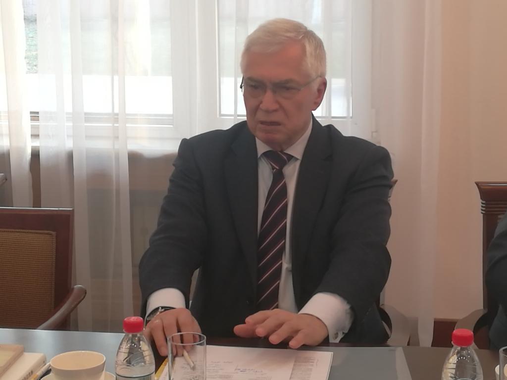焦明大使对孙先民书记一行的到来表示热烈欢迎。他表示,2015年就到访过哈尔滨商业大学,参观了货币博物馆等地,哈尔滨商业大学是有着悠久的发展历史和深厚的人文积淀的商科大学,此次访问给他留下了美好的印象。此次孙先民书记专程来到乌克兰驻中国大使馆,就推进与乌克兰高校的教育合作进行洽谈,他感到非常高兴。