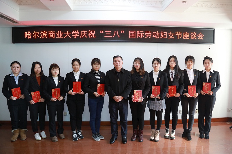 校团委书记王鹤腾首先宣读了《关于表彰哈尔滨商业大学2017年度优秀女大学生的决定》,杨殿军向获得2017年度优秀女大学生的代表颁奖并合影留念。