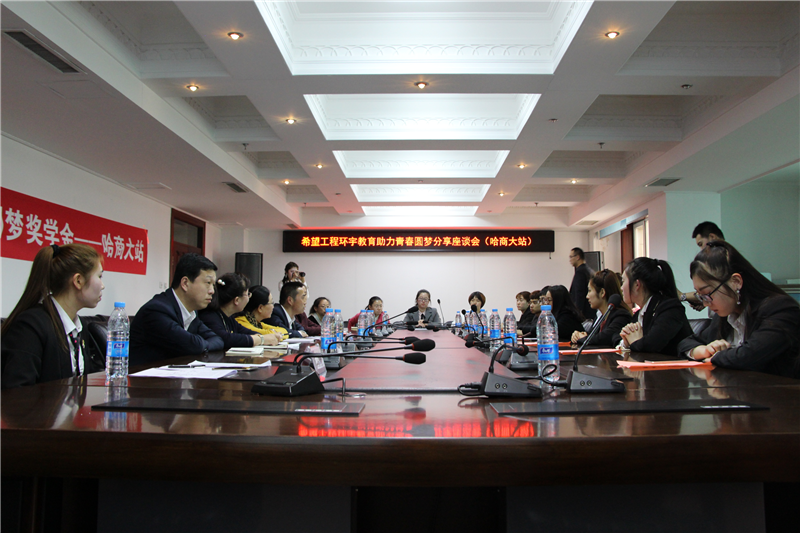 4月17日下午,“希望工程环宇教育助力青春圆梦”分享座谈会在我校举行,黑龙江团省委希望工程捐助中心主任杨晶,环宇教育集团校长谢丽茹,我校团委、学院团委相关负责同志,以及我校“环宇圆梦”奖学金获得者共30余人参加了分享座谈会,座谈会由校团委胡笑彬主持。