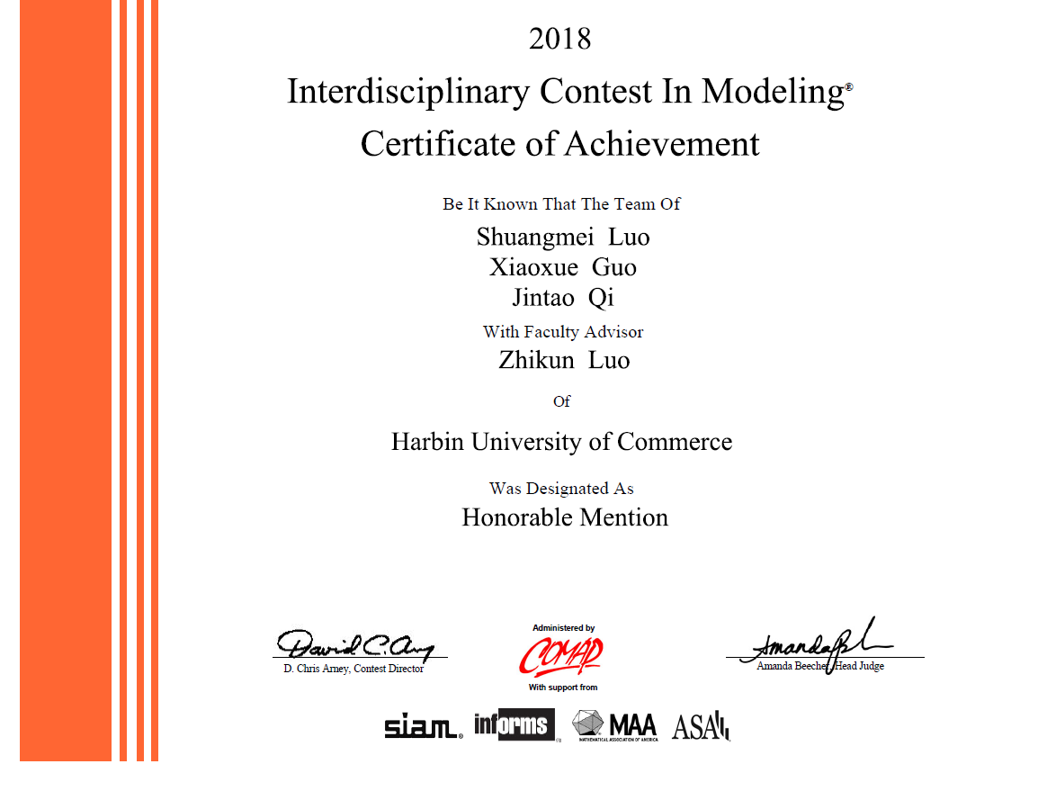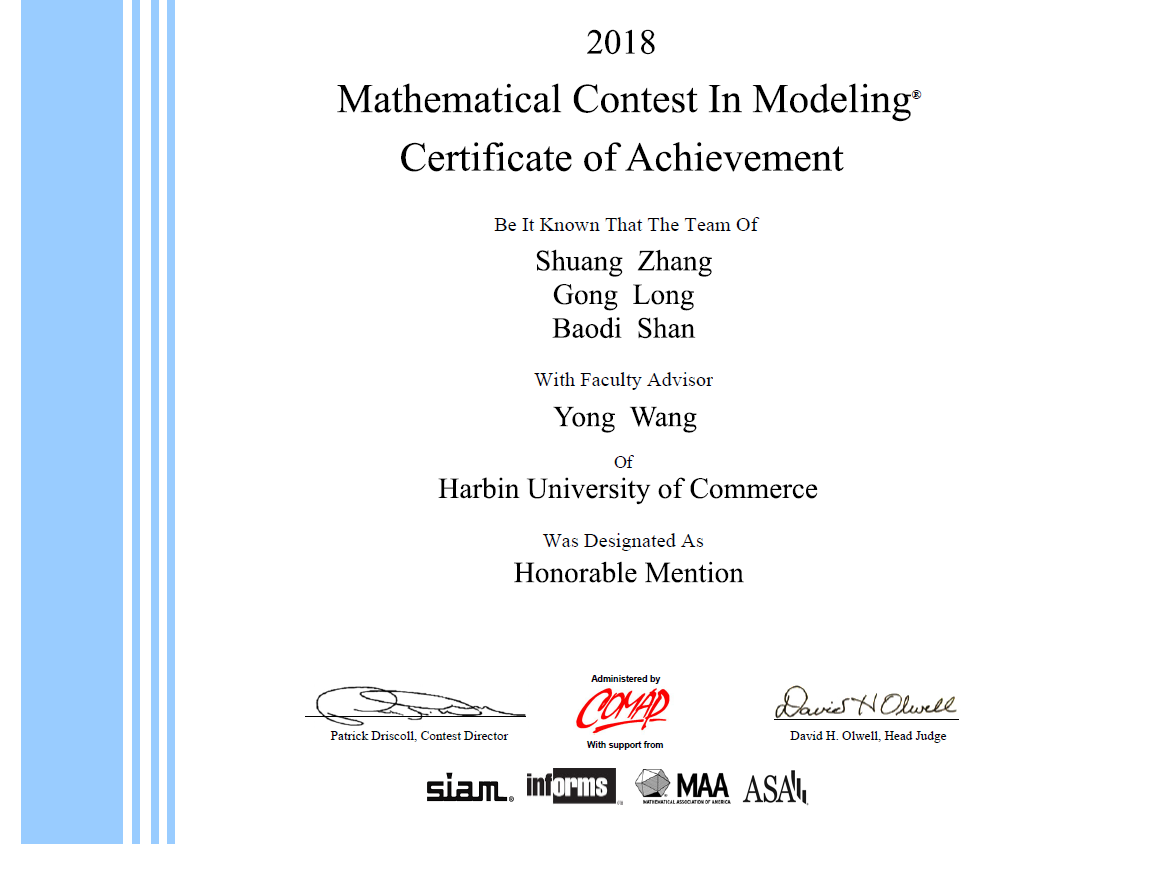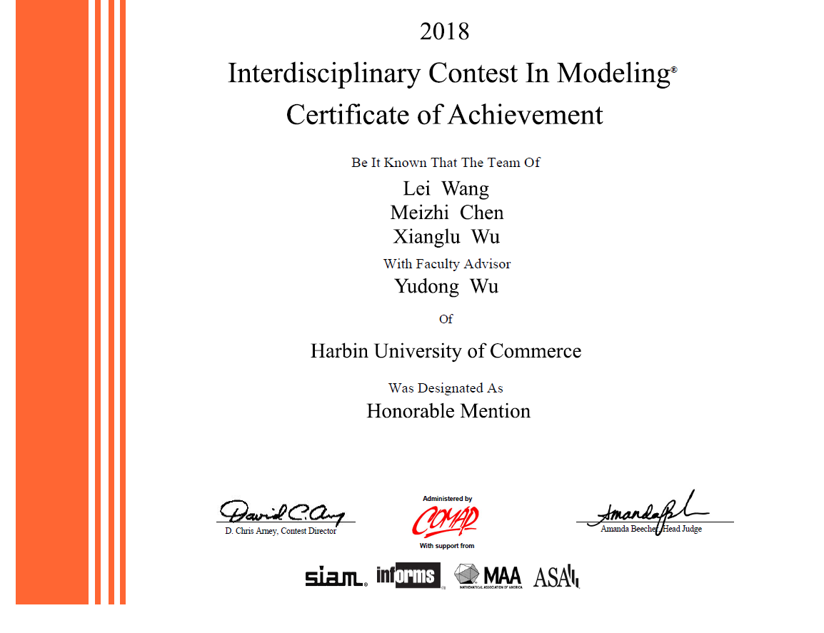 4月21日凌晨一点,据美赛官网发布的消息,我校学生喜获2018美国大学生数学建模竞赛国际二等奖18项,成功参赛奖17项。打破了2017年11项国际奖的记录,是我校历届参赛获奖项数量最多的一次。