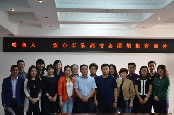 5月17日上午,在爱心车队队长刘青林董事长的带领下,爱心车队的部分成员及其亲友到访我校,针对2018年高考志愿填报有关问题进行咨询。学校专门组织了“哈商大·爱心车队”高考志愿填报专场咨询会,为爱心人士们答疑解惑。校党委副书记杨殿军出席会议并讲话,招生就业处处长赵炎、学生工作部部长白云龙、国有资产管理处处长金代志及相关人员参加了会议。