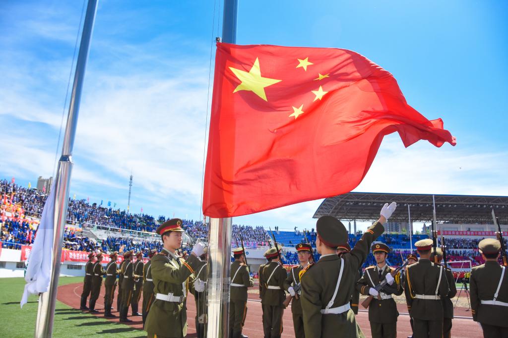 激情五月,花满商大,青春与自信齐飞,汗水与斗志并行。5月25日8:30,哈尔滨商业大学第44届阳光体育运动会如期开幕。体育场内座无虚席,夏日的热情在这里被点看台四周彩旗招展,花团锦簇,2万多名师生沉浸在欢乐祥和、激情飞跃的海洋里。