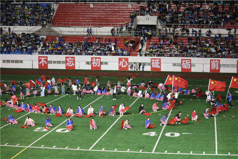 在近两个月的排练过程中,全校近3500人的演职志愿者及学生互动观众,在课程时段分散,难以统一集中排练的客观情况下,怀揣着对学校的热爱,以饱满的热情,充分利用课余时间进行高效有序的排练,彰显了商大学子追求卓越、甘于奉献、勤勉向上的精神。