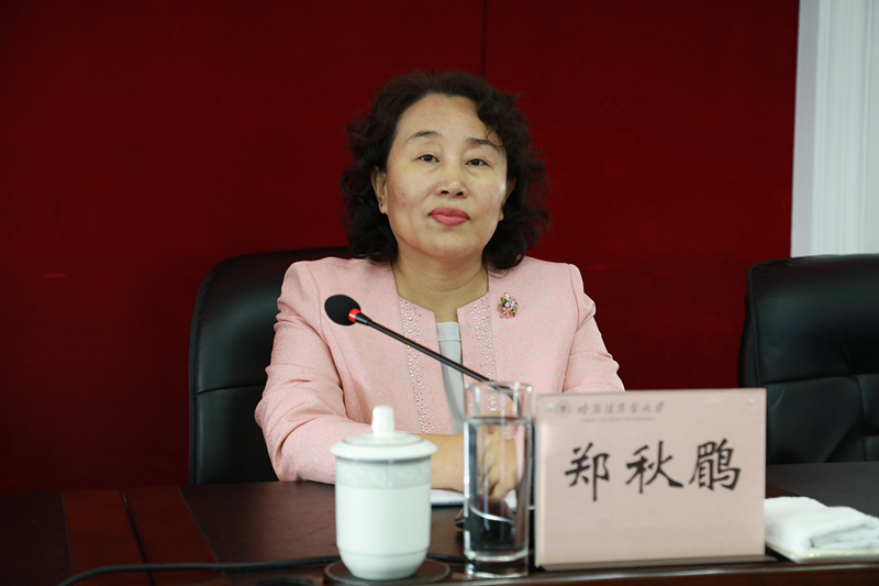 赵国刚同志讲话时指出,这次领导班子调整,是根据哈尔滨商业大学的实际情况和事业发展需要,经过多方考虑、慎重研究做出的决定。赵国刚同志介绍了郑秋鹛同志的履历情况。他指出,郑秋鹛同志政治素质比较好,拥护党的领导,大局观念比较强。从一线教师起步,长期从事高校科研管理、科技成果转化等工作,熟悉高等教育规律,领导经验比较丰富。工作思路比较清晰,有创新意识,敢抓敢管。工作务实,肯于吃苦,作风干练。他要求,学校要坚决贯彻省委的决定,全力支持郑秋鹛同志开展工作,也希望郑秋鹛同志尽快转换角色,融入哈商大,发挥自身优势,与先民同志及其他班子成员一道,团结带领全校师生员工站在新起点,加快学校内涵发展、特色建设,不断开创新局面,不辜负省委和同志们的信任和重托。