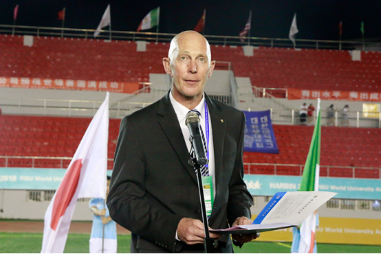 国际大学生体育联合会执委马丁·道尔顿在致辞中代表国际大学生体育联合会及本次赛事监督委员会成员感谢组委会积极的工作态度,感谢运动员、教练员和各参赛队员的公平竞争与全情投入,感谢所有裁判和赛事官员的精心工作与专业服务,感谢所有志愿者的热情与阳光。他说,本次比赛即将结束,但是比赛带给大家的美好回忆会珍藏于心,期待2020年匈牙利再相见。
