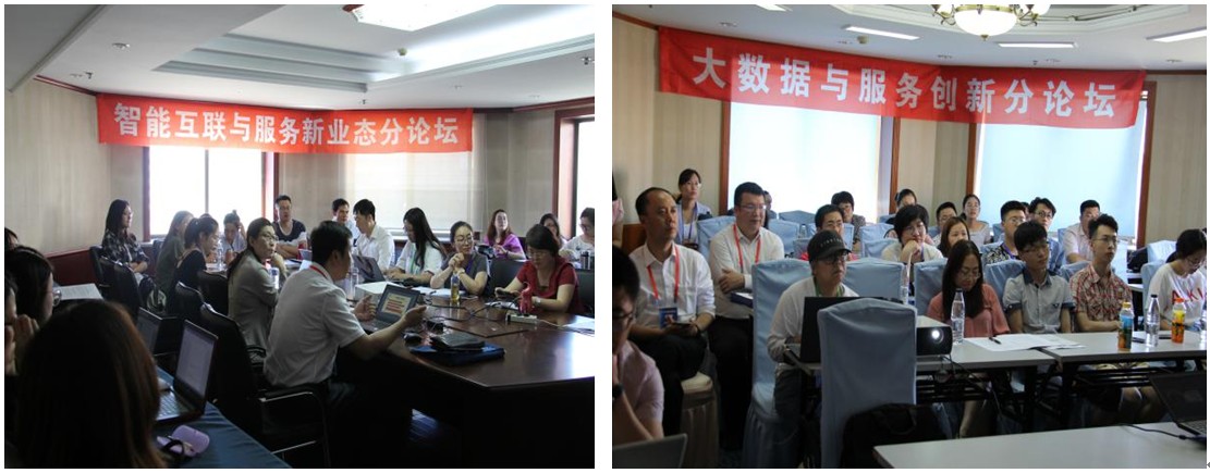 下午两个平行分会场分别是智能互联与服务新业态分会场和大数据与服务创新分会场。智能互联与服务新业态分会场上半场邀请了中央红集团执行总裁徐卫国、青岛骏诚网络科技有限公司经理张诚华以及浙江工商大学马江璐。其中,徐卫国总裁为我们简单说明了中央红集团产业链的基本情况,并着重对集团构建的哈尔信有机生态农场进行了介绍;张诚华经理结合中国家禽养殖行业的现状,并通过分析行业痛点构建了基于AI的智慧家禽养殖“物联网+”大数据的应用平台;马江璐通过构建理论模型对制造企业服务化进行了充分的探讨。下半场邀请了电子科技大学周静芝副教授和哈尔滨商业大学魏胜博士。其中,周静芝副教授对快递服务质量进行了评价并提出改进对策。魏胜博士从绿色感知价值和绿色产品涉入度的视角切入,探索了生活方式对绿色消费意愿的转化机理。