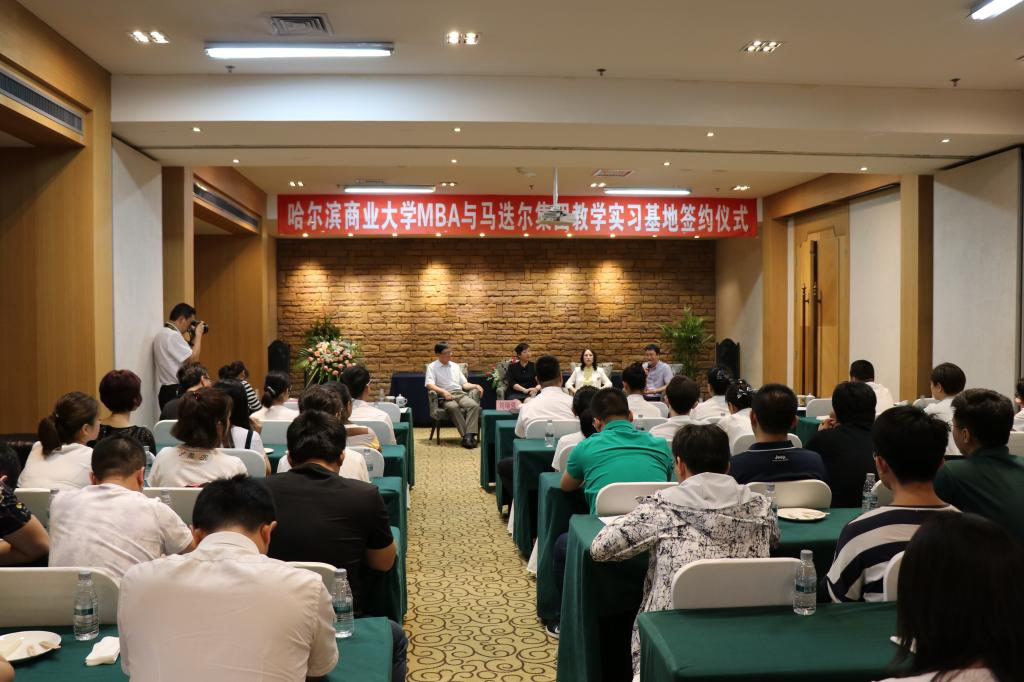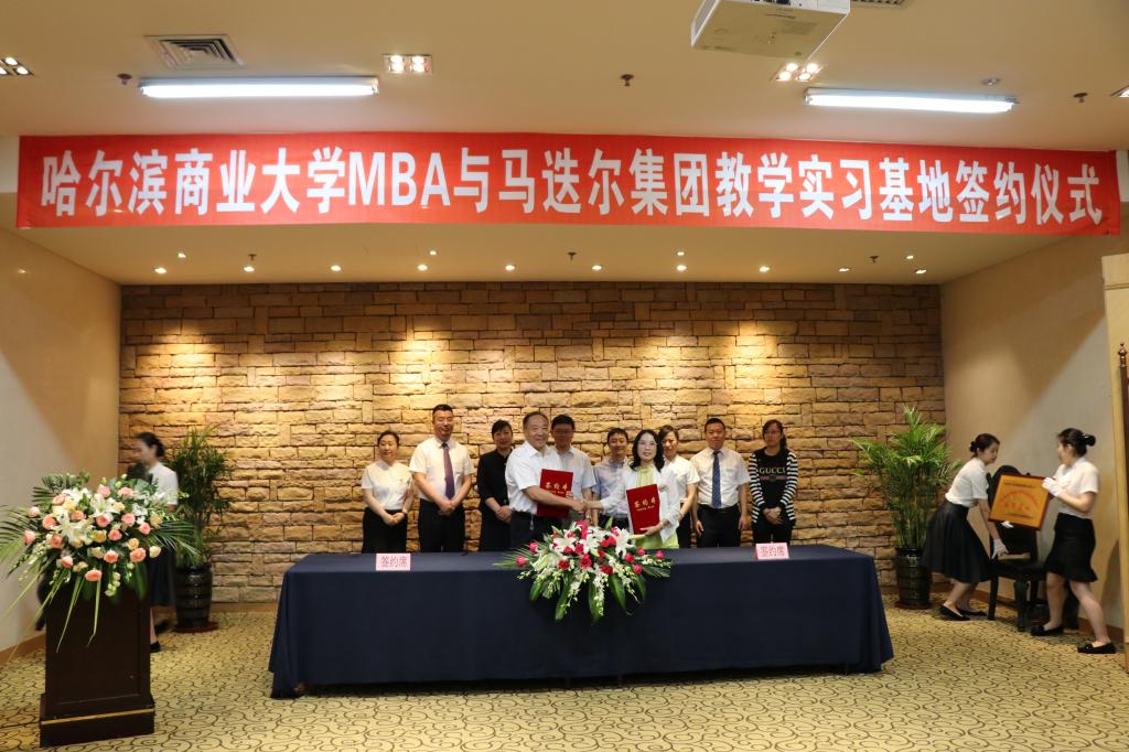 同时,为了能够实现我校MBA与哈尔滨马迭尔集团的长期合作,共同促进,共同发展。创新创业学院与哈尔滨马迭尔集团签订了哈尔滨商业大学工商管理硕士(MBA)实习基地协议,并授予哈尔滨马迭尔集团工商管理硕士实习基地牌匾,并聘请刘瑞强董事长、高晓华副董事长为我校MBA特聘教授。在实习基地协议签订仪式上,刘瑞强董事长致辞,对我校MBA师生的到来表示热烈的欢迎,并希望能够进一步加强校企合作,希望我校MBA师生能够为企业未来的发展献计献策,不断提升哈尔滨马迭尔集团的企业核心竞争力。宋晓洪院长对哈尔滨马迭尔集团的热情接待表示衷心的感谢,高度评价了哈尔滨马迭尔集团的发展,并希望能够有更多的机会、从更多领域出发与哈尔滨马迭尔集团进行深度合作。