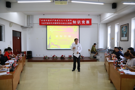 6月27日下午,由中共哈尔滨商业大学委员会组织部、中共松北区委员会组织部主办,哈尔滨商业大学马克思主义学院、中共松北区太阳岛街道工作委员会、中共松北区松安街道工作委员会承办的“庆祝中国共产党成立九十七周年暨学习习近平新时代中国特色社会主义思想”知识竞赛在我校举行。