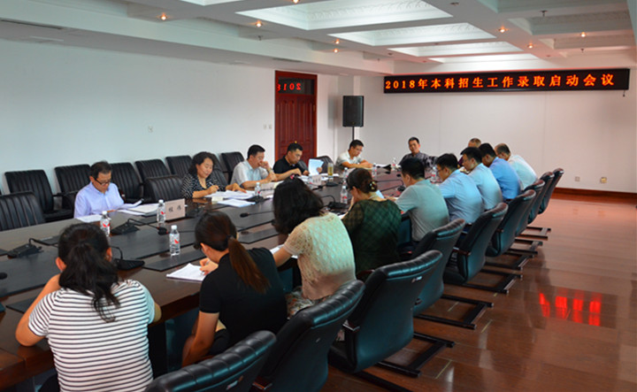为保证我校2018年本科招生录取工作的顺利完成,7月2日下午我校在行政楼五楼会议室召开了2018年本科招生工作录取启动会议。校长郑秋鹛、党委副书记杨殿军、副校长程伟、纪委书记姜国峰出席会议,纪检监察处处长付林、副处长冯建元、招生就业处处长赵炎及全体招生录取工作人员参加会议。会议由党委副书记杨殿军主持。