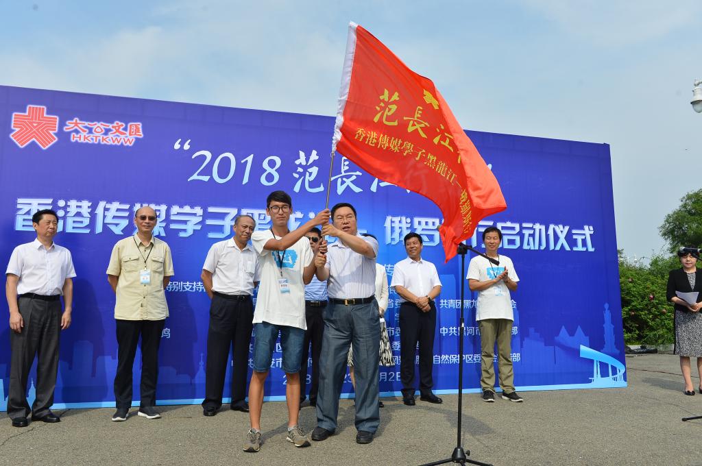 黑龙江省委统战部副部长李凡为香港传媒学子参访团授旗,预示“2018年第五届范长江行动——香港传媒学子黑龙江——俄罗斯行”活动正式开始。启动仪式结束后,“范长江行动团”团员参观了哈尔滨商业大学商业文化馆及校园风光。