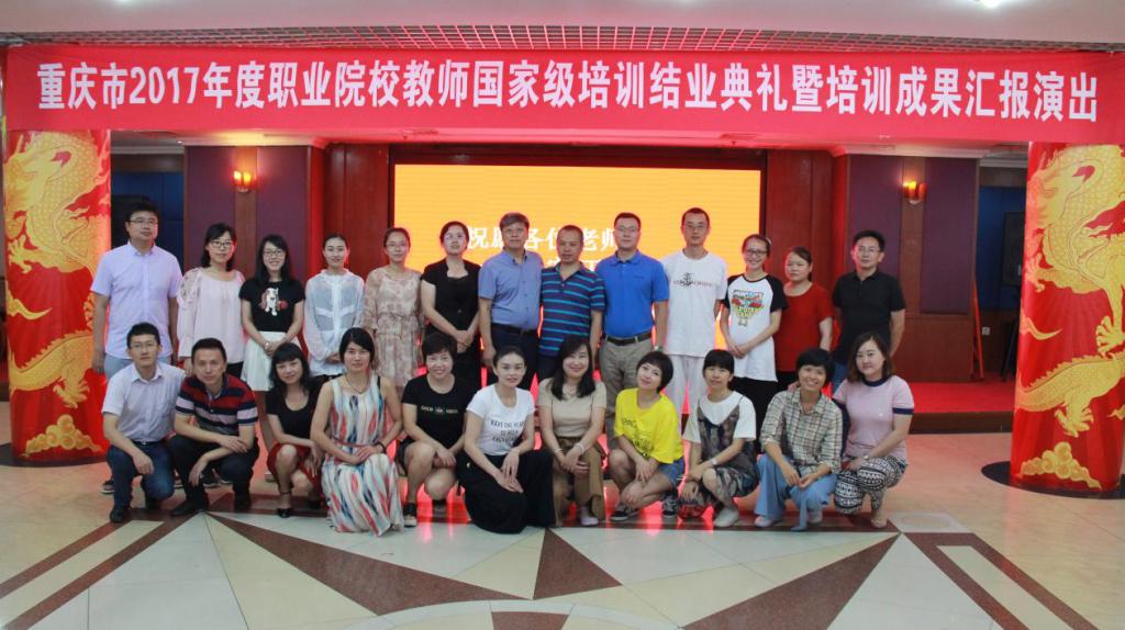 7月29日,重庆市2017年度职业院校教师国家级培训班结业典礼暨培训成果汇报演出在我校隆重举行。药学院院长李文兰教授、会计学院院长张林教授、职业技术教育学院刘兴革院长、国培工作人员和全体参训学员参加结业典礼。