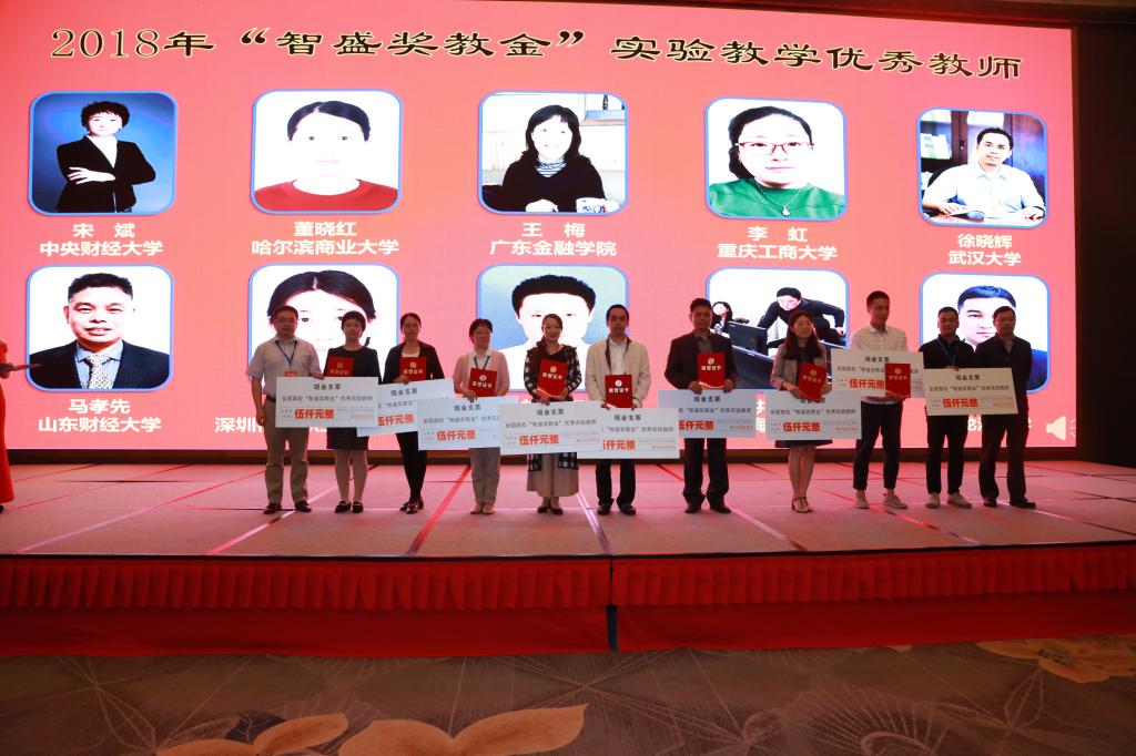 开幕式后,大会进行了2018年“智盛奖教金”和“联奕奖教金”颁奖仪式。中央财经大学宋斌等二十位在经管实验教学岗位上做出突出贡献的教师获此殊荣,我校金融学院董晓红老师位列其中。