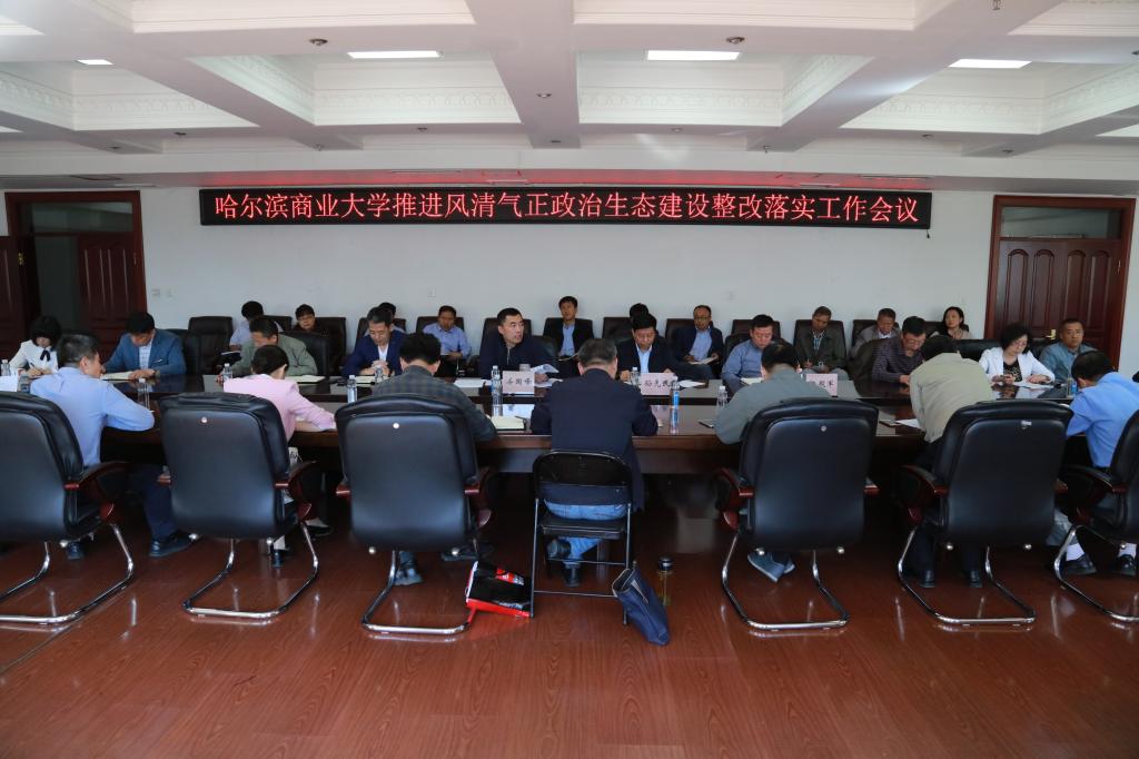 党委书记孙先民强调,今天的会议是为进一步落实省委第一巡视组专项巡视反馈意见的整改会,是积极推进我校风清气正政治生态建设的推进会,开得很有必要、也很及时。结合省委高校工委对我校2017年政治生态建设成效考核情况的反馈意见,根据《哈尔滨商业大学风清气正政治生态建设工作方案》要求,孙先民对下一步工作进行了部署,指出我校政治生态建设工作要在以下八个方面“下功夫”:一是要在提高思想认识上下功夫,着力解决政治站位不高、“四个意识”不强的问题;二是要在把握基本要求上下功夫,着力解决工作标准不清、要求不高的问题;三是要在加强作风建设上下功夫,着力解决“官本位”、庸懒散等作风方面的问题;四是要在领导班子建设上下功夫,着力解决不团结、合力不强的问题;五是要在健康文化建设上下功夫,着力解决“圈子文化”、团团伙伙等方面的问题;六是要在强化正风反腐上下功夫,着力解决管党治党“宽、松、软”的问题;七是要在工作有效融合上下功夫,着力解决基层组织被动应付、效率不高的问题;八是要在聚焦党建主业上下功夫,着力解决工作落得不实、质量不高的问题。