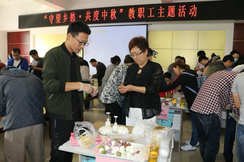 计算机与信息工程学院组织全体教职工制作冰皮月饼,老师们把亲手制作的月饼与家人共享,体味浓浓的亲情。食品工程学院学生在研究生学院于兴洋老师带领下走进117烘焙教室,制作香甜美味的月饼,将商大温情也融尽其中。旅游烹饪学院学生会成员在烹饪面点实验室制作月饼,体会“自己动手丰衣足食”的快乐。