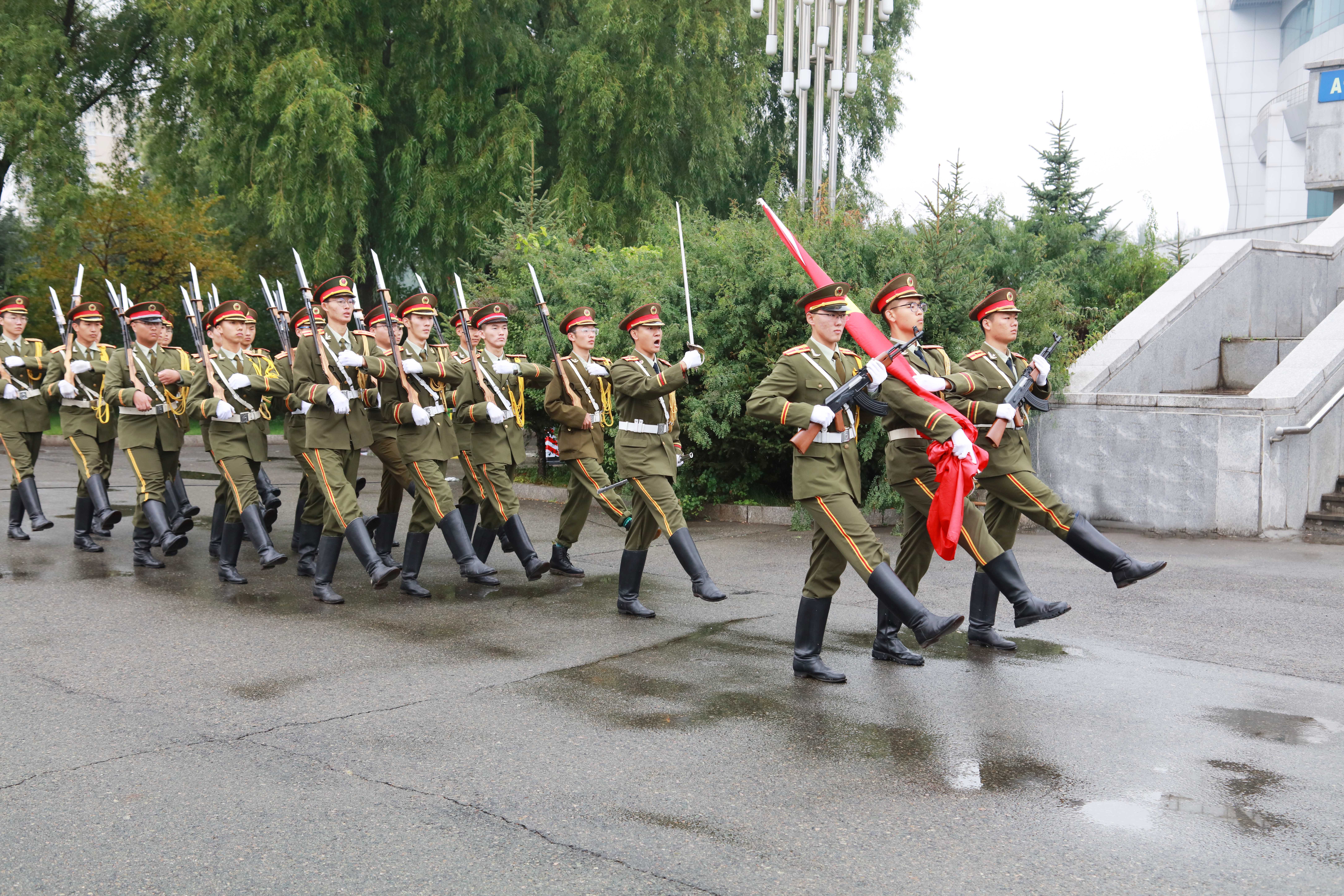 8时30分,在歌唱祖国的乐曲声中,国旗班队员踏着威武雄壮的步伐,护卫国旗入场,在现场师生的注视和齐声合唱的国歌声中,将五星红旗冉冉升起。嘹亮的国歌声打破了清晨的宁静,国旗迎风招展,映红了校园的上空。
