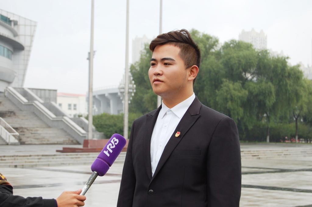 升旗仪式现场师生心情激动,面对媒体采访,纷纷表达了对祖国的热爱之情。