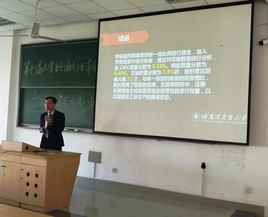 10月12-16日,由教育部主办的第十一届全国大学生创新创业年会在集美大学隆重举行。我校由轻工学院2015级包装工程专业胡宇枫主持、巩雪副教授指导的2017年国家级大学生创新创业训练计划项目成果《添加剂对可食性蔬菜纸耐折度的影响》入选年会交流论文。这是我校国家级大学生创新创业训练计划项目第二次入选全国大学生创新创业年会。本届年会入选学术论文共176篇,是教育部从部属院校和地方教育主管部门推荐的392篇学术论文中层层遴选而出。邢志华、巩雪等5位老师到年会现场交流学习。