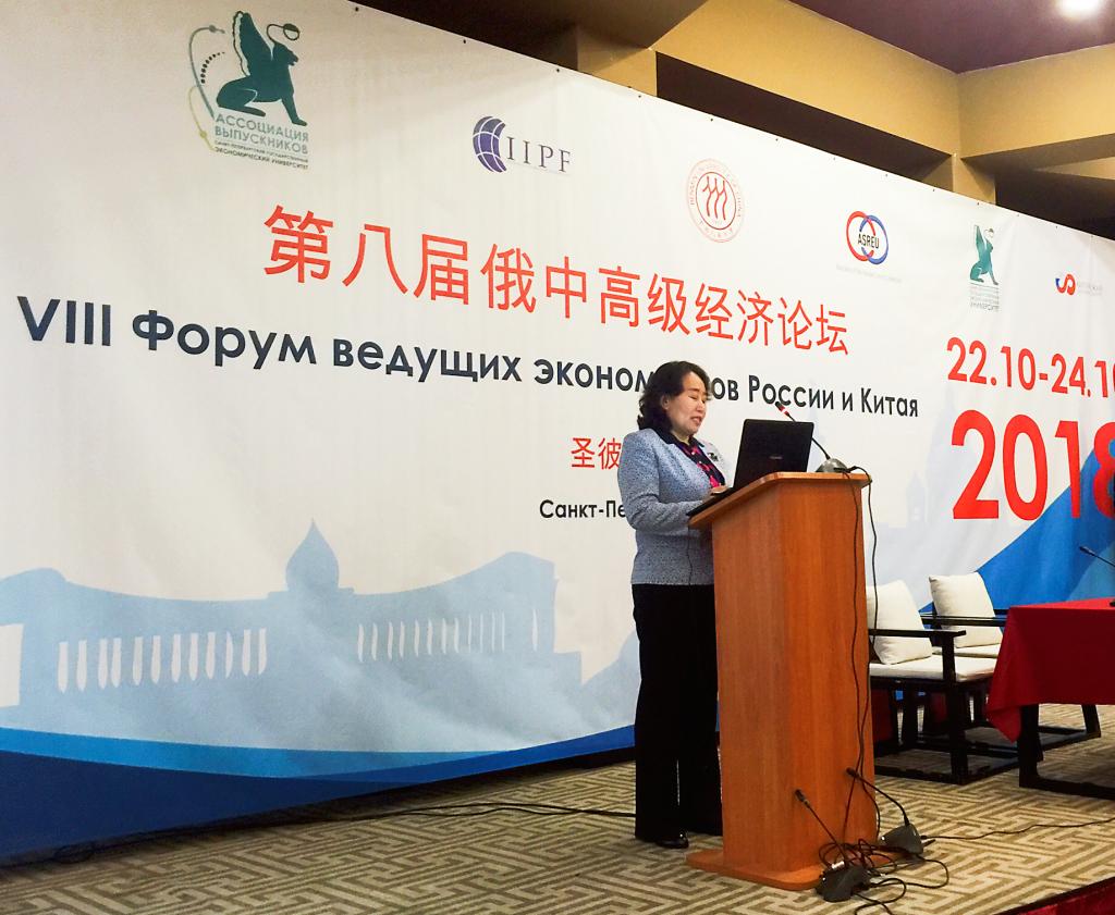 10月23日, 第八届中俄高级经济论坛在瓦西里岛俄中商务园正式开幕。郑秋鹛校长出席开幕式并做了《推进中俄间高校合作,助力中俄“五通”建设》的主旨发言。