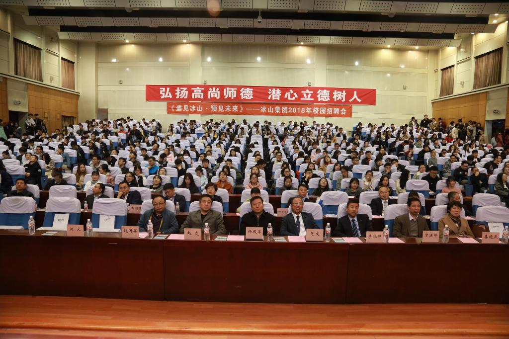 10月19日下午,冰山集团副总裁范文及旗下八家分公司负责同志一行17人访问我校,并举办以“遇见冰山·预见未来”为主题的专场招聘会。校长郑秋鹛会见了来访客人,学校党委副书记杨殿军、招生就业处处长赵炎及相关学院负责同志参加了招聘会。