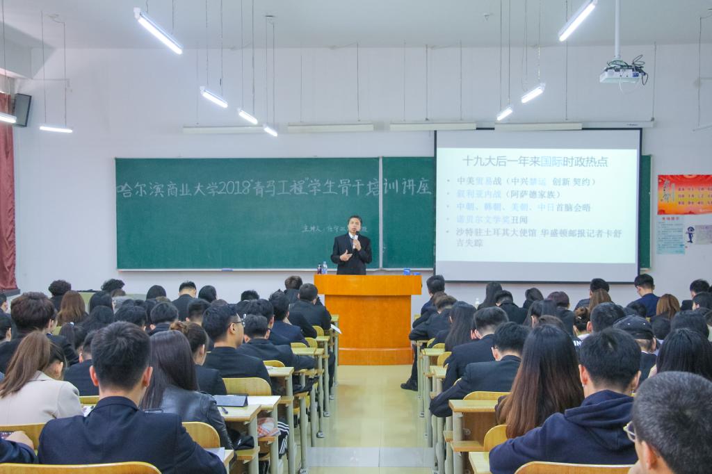 为深入实施“青年马克思主义者培养工程”,引领青年学生进一步学习领会党的十九大精神,加强当代中国马克思主义特别是习近平新时代中国特色社会主义思想在青年学生中的学习、传播和践行,按照《关于开展哈尔滨商业大学2018“青马工程”学生骨干培训工作的通知》的总体安排,校团委于10月31日下午在A区4203教室举办了2018年“青马工程”学生骨干首期培训讲座。讲座由校团委秦靖然老师主持,邀请了2017年全国思政课教学展示自然辩证法组骨干教师、黑龙江省自然辩证法研究会常务理事、哈尔滨医科大学马克思主义学院的任守双副教授做专题培训,共有校、院学生骨干近200人参加了首期培训。