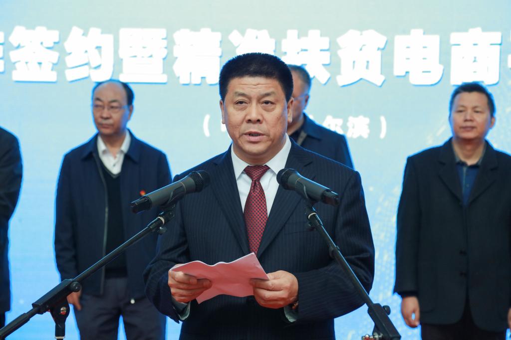 11月9日上午,我校与依安县战略合作签约暨精准扶贫电商平台启动仪式在A区教学主楼举行,省扶贫办、省委组织部、省教育厅领导,齐齐哈尔市领导,依安县委、县政府领导,我校校领导班子成员及相关部门、学院的负责同志,企业代表及省内外媒体记者出席启动仪式。启动仪式由我校党委副书记杨殿军主持。