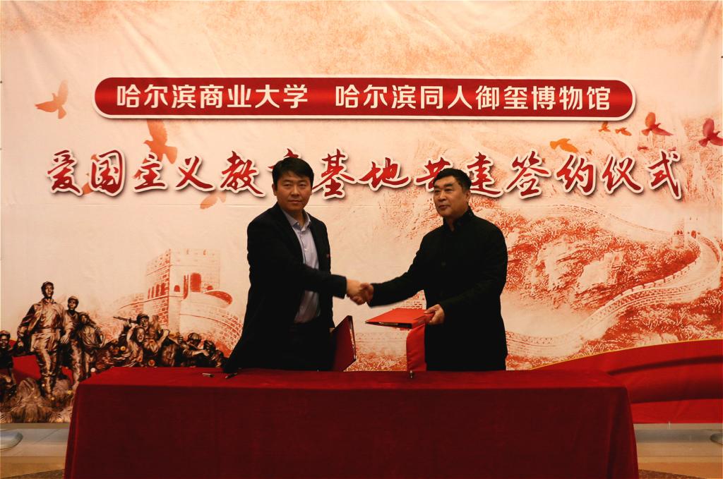 校团委书记王鹤腾与哈尔滨同人御玺博物馆馆长徐兴杉签订合作协议书