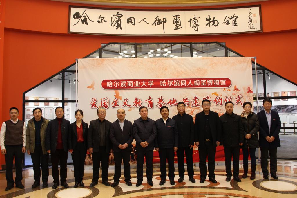 11月22日13点30分,我校与哈尔滨同人御玺博物馆“爱国主义教育基地”校馆合作挂牌仪式在哈尔滨同人御玺博物馆举行,校党委书记孙先民、校党委副书记杨殿军、哈尔滨同人御玺博物馆馆长徐兴杉、哈尔滨市人民政府地方志办公室主任赵竹帛、哈尔滨市文联常务副主席高弟等领导及嘉宾出席挂牌仪式,我校相关部门负责同志和学生代表共同参加了挂牌仪式。