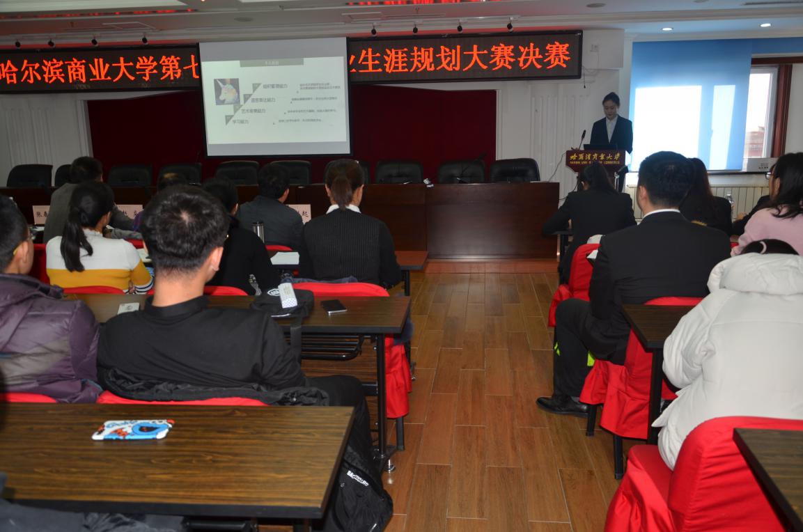 27日下午,由招生就业处主办的哈尔滨商业大学第七届大学生职业生涯规划大赛决赛在行政楼六楼会议室举行,共有十二名选手现场角逐。