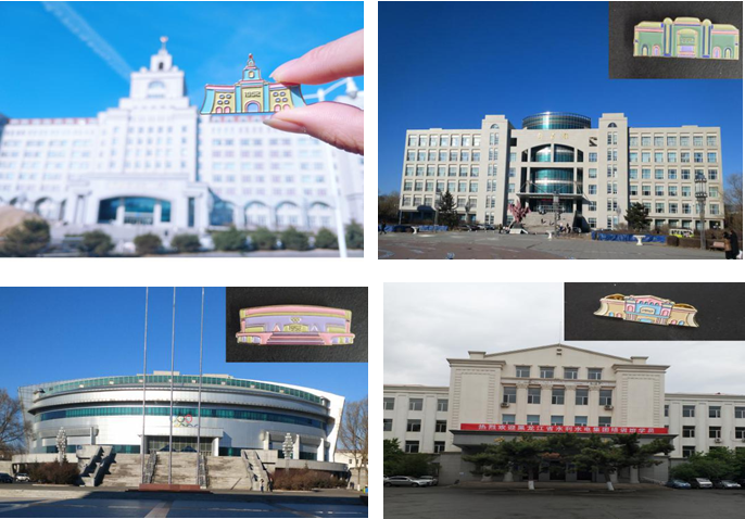 Å系列博物馆文创产品是以哈尔滨商业大学南北区标志性建筑物与哈尔滨商业大学货币金融博物馆精品货币藏品纹样元素相结合,不仅突出了哈尔滨商业大学的校园文化特点,还承载着哈尔滨商业大学货币金融博物馆的文化和历史。