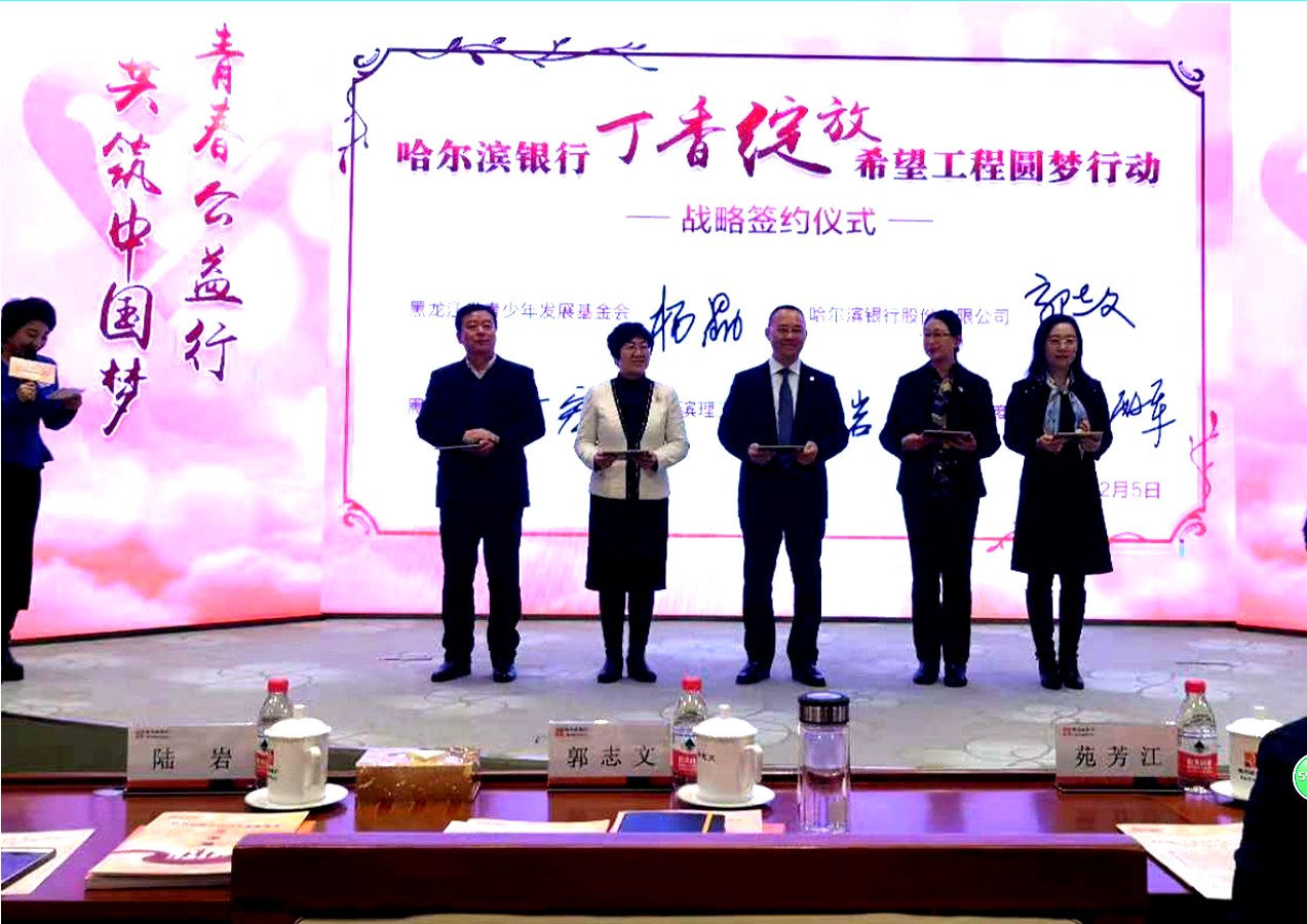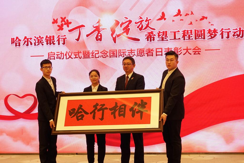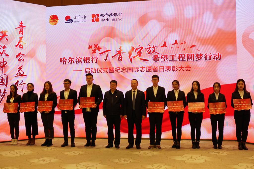12月5日,以“青春公益行 共筑中国梦”为主题的哈尔滨银行“丁香绽放·希望工程圆梦行动”启动仪式在哈尔滨银行总行成功举办。共青团黑龙江省委书记苑芳江,哈尔滨银行党委书记、董事长郭志文,哈尔滨商业大学党委副书记杨殿军,黑龙江省希望工程捐助中心主任杨晶,黑龙江省青少年发展基金会理事长李靖国等领导及嘉宾出席了活动。我校10名获得“哈尔滨银行·希望工程奖(助)学金”的学生代表及10名志愿者受邀参与了活动。