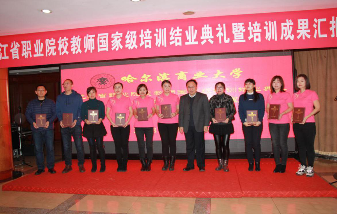 12月8日,黑龙江省职业院校教师国家级培训班结业典礼暨培训成果汇报展演在商大酒店举行。副校长张林、会计学院院长张劲松、职业技术教育学院院长刘兴革、旅游烹饪学院副书记李晓阳及全体参训学员参加结业典礼。张林为学员代表颁发培训结业证书。