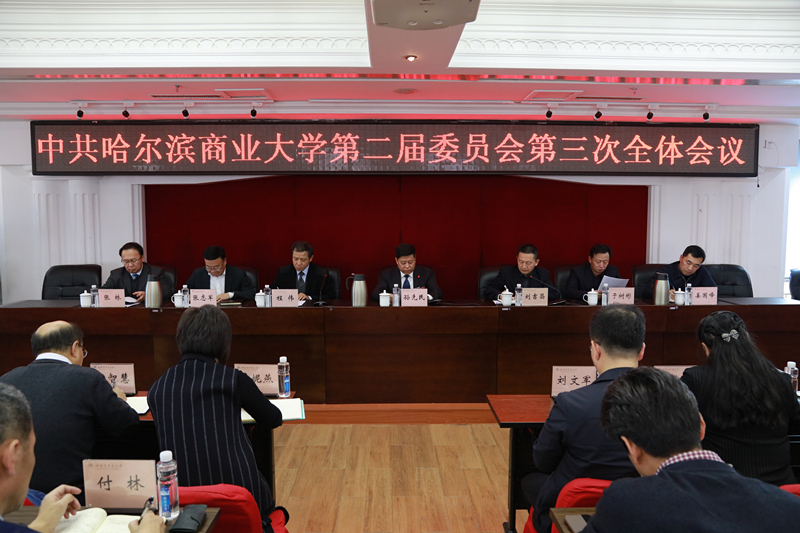 中共哈尔滨商业大学第二届委员会第三次全体会议于12月31日下午召开。学校党委全体委员参会,校纪委委员、各基层党委、党总支书记列席会议。党委副书记刘吉昌主持会议。