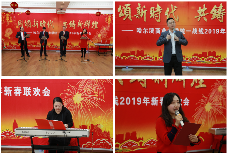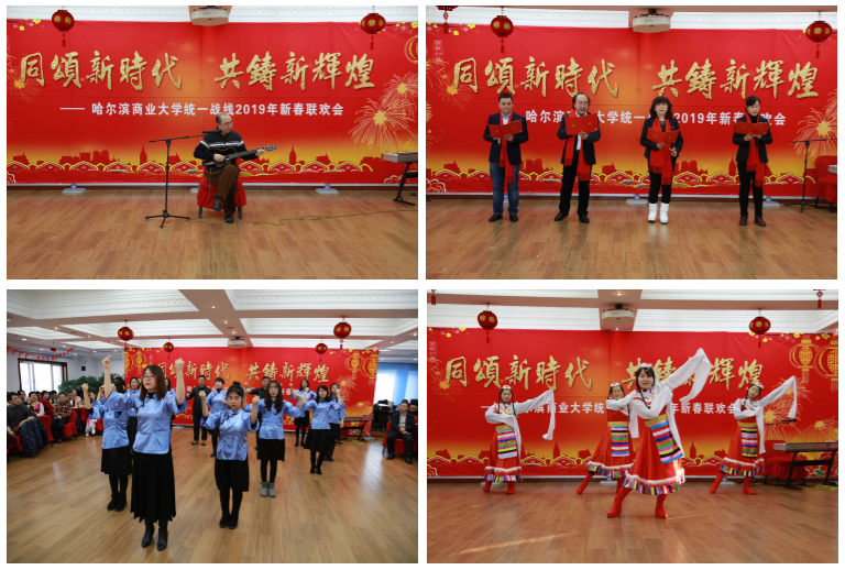 一曲笙歌春似海,万家灯火夜如年。2019年1月6日下午,“同颂新时代 共铸新辉煌”哈尔滨商业大学统一战线2019年新春联欢会在行政中心六楼大会议室隆重举行。学校党委书记孙先民,校长郑秋鹛,党委副书记杨殿军、刘吉昌,副校长程伟、于树彬、张志军,纪委书记姜国峰,工会主席李晓梅出席联欢会。全校各民主党派、无党派人士、欧美同学会、归侨侨眷、少数民族代表,与各基层党组织负责人、统战干部,有关职能部门领导共180余人,欢聚一堂,辞旧迎新。
