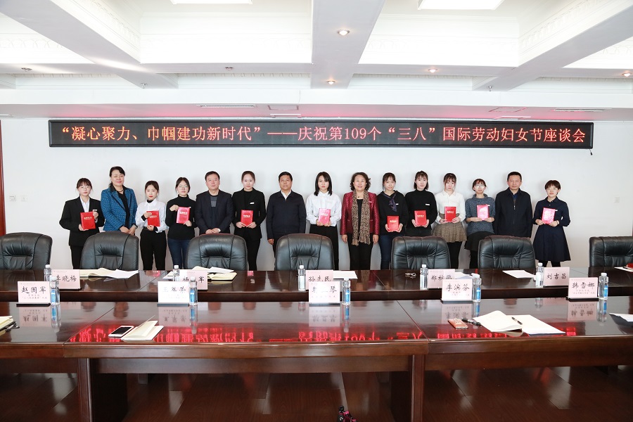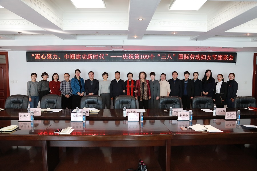 3月6日下午,我校召开了以“凝心聚力 巾帼建功新时代”为主题的庆祝“三八”国际劳动妇女节座谈会。党委书记孙先民、校长郑秋鹛、党委副书记杨殿军、党委副书记刘吉昌、校工会主席李晓梅出席座谈会,并与2018年度“三八红旗集体”“标兵岗”及“杰出巾帼工作者”获奖单位代表及获奖人员、2018年度优秀女大学生代表、民主党派教师代表、青年教师代表、优秀工会积极分子代表、分工会主席代表、退休教师代表、管理部门女干部代表欢聚一堂,畅谈对学校发展的美好愿景。校工会常务副主席周鸿武主持座谈会。