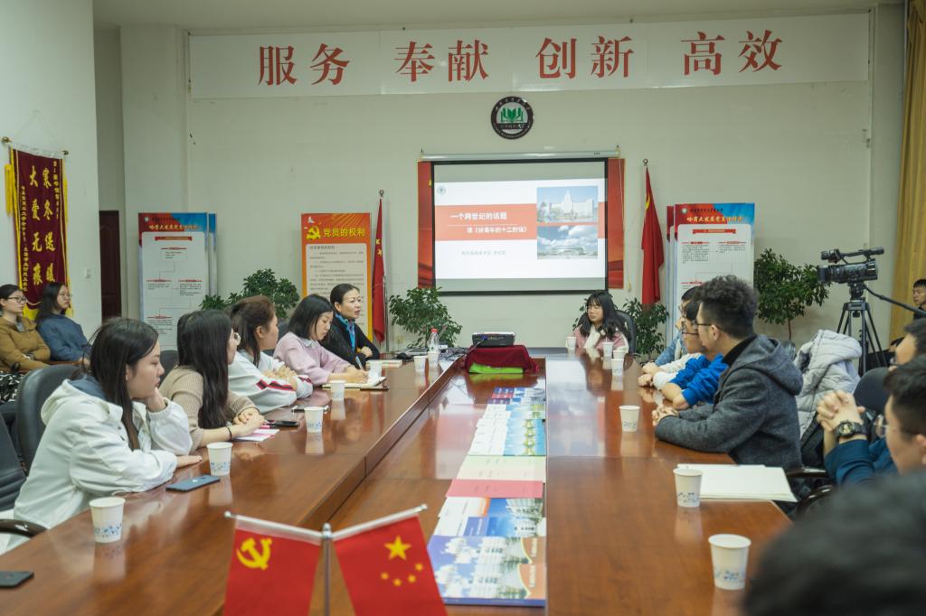 活动开始,李老师首先介绍了朱光潜先生及其所生活的年代,接下来通过解读《给青少年的十二封信》,带大家走进了先生所希望的青少年世界。她为大家细致地讲解了本书中的几部分:第一封信《谈读书》,读书作为第一封信可见读书的重要性;第二封信《谈在卢佛尔宫所得的一个感想》,信中列举了大量的实例,深入浅出地对书中精髓内容进行了阐述。此外,李老师还从“谈修养”和“对我们的启示”两个方面讲述了朱光潜先生寄予青年的期望和给予的方法。在李老师的引导下,同学们积极思考并与老师探讨学习生活中的困惑,现场气氛非常活跃,掌声不断。