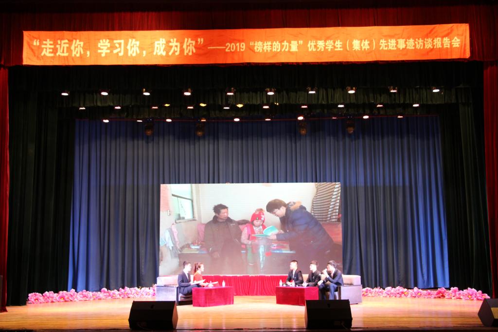 3月28日、29日,由校团委举办的2019“榜样的力量”优秀学生(集体)先进事迹访谈报告会,在南、北校区大礼堂圆满落幕。全校18个学院2000余名学生参加了报告会。